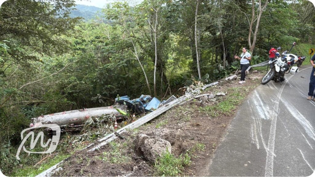 El accidente se registró cuando una cisterna cargada de combustible perdió el control, se volcó y se precipitó a un guindo, impactando posteriormente contra un árbol, lo que provocó múltiples lesiones en los ocupantes.